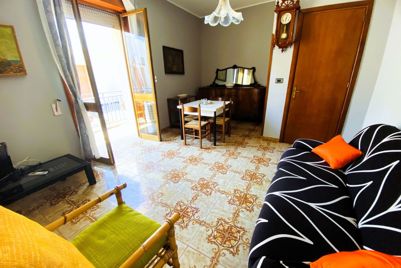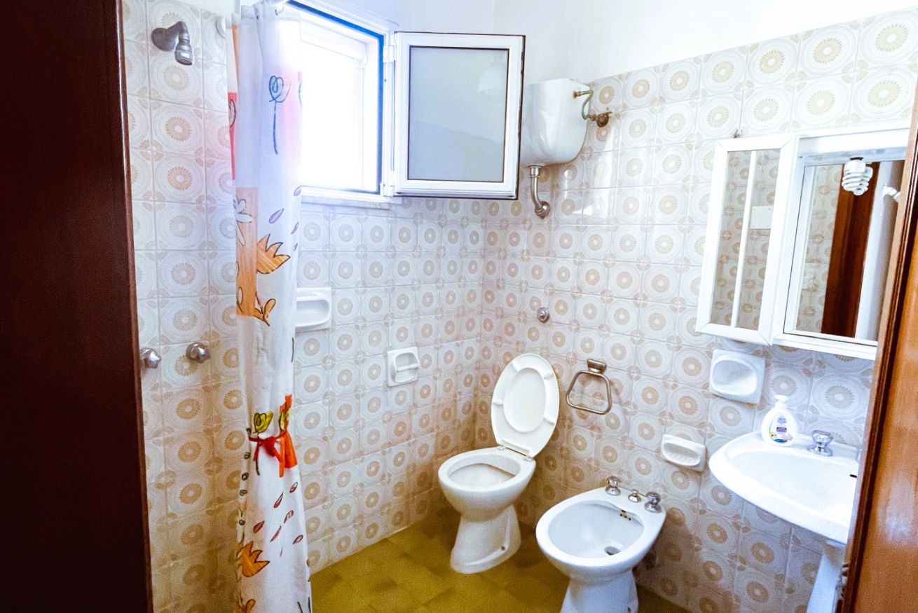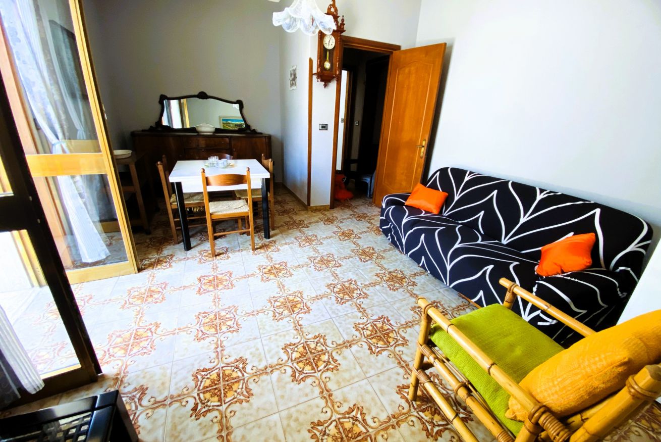 Composto da camera matrimoniale, camera con due letti singoli, soggiorno con zona pranzo, cucina attrezzata, bagno e balcone. La terrazza vista mare al piano superiore è perfetta per colazioni all’aperto, cene estive o momenti di relax.
