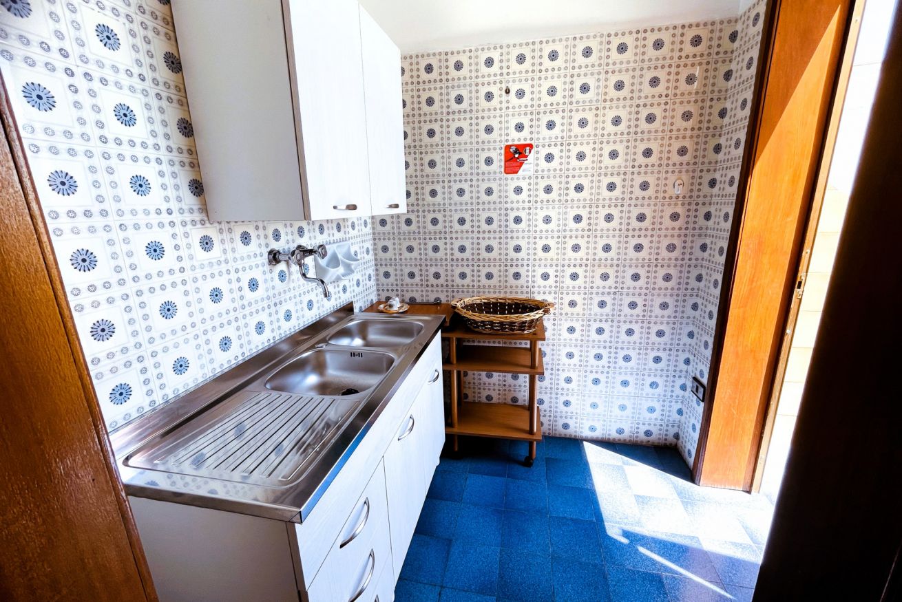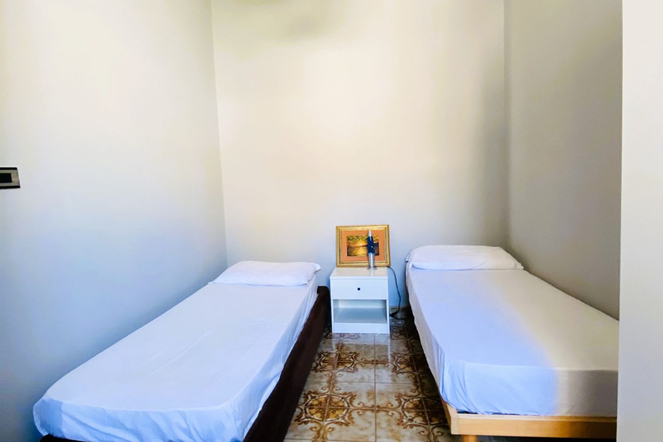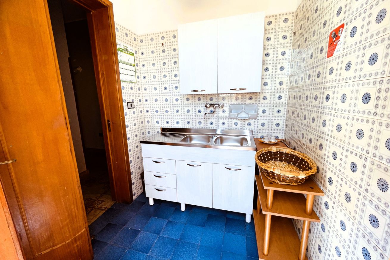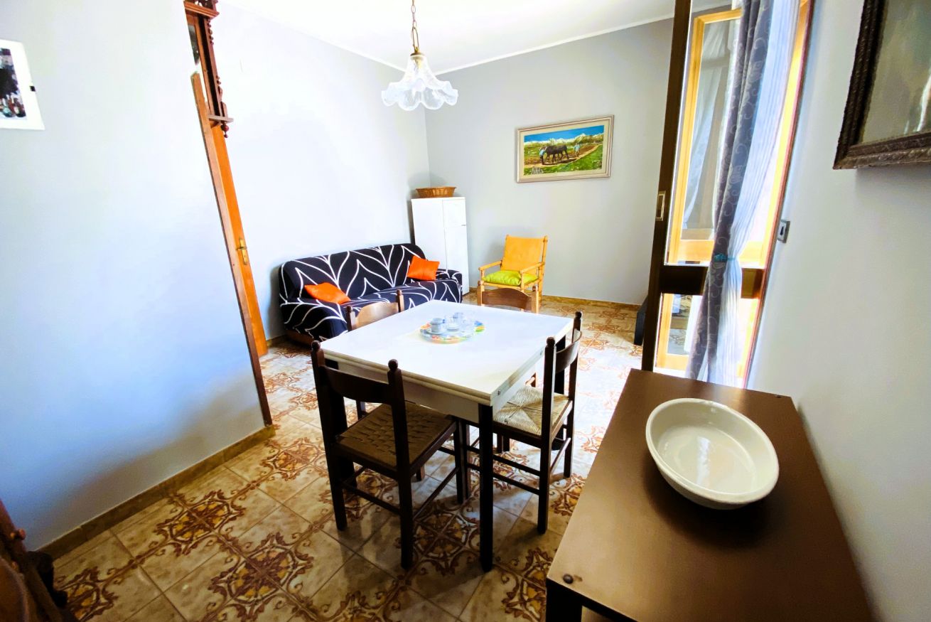 Composto da camera matrimoniale, camera con due letti singoli, soggiorno con zona pranzo, cucina attrezzata, bagno e balcone. La terrazza vista mare al piano superiore è perfetta per colazioni all’aperto, cene estive o momenti di relax.